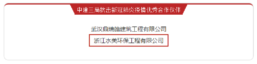 太陽(yáng)成集團(tuán)tyc環(huán)境旗下水美環(huán)保獲評(píng)中建三局抗疫“優(yōu)秀合作伙伴”!